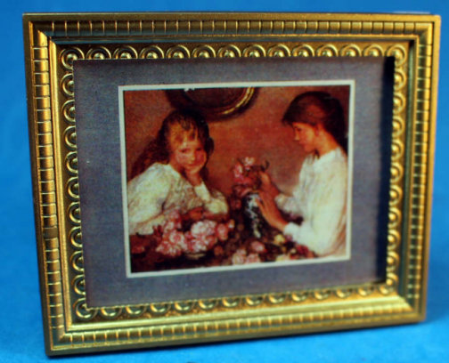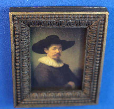 Glass cover over print. Bue/gray with gold accents frame. 1 1/2" x 1 5/8"
