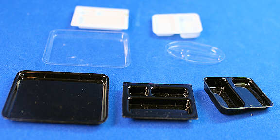 Some tray are partitioned. Largest one is 1 1/4" x 1"
